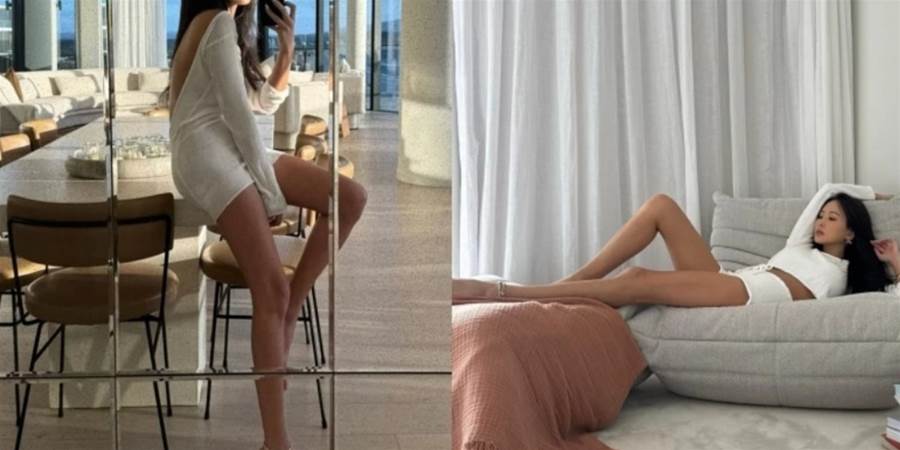 而其中最美的畫面,無疑是孫蕓蕓本人,慵懶躺在沙發上、或隨意靠著桌邊,