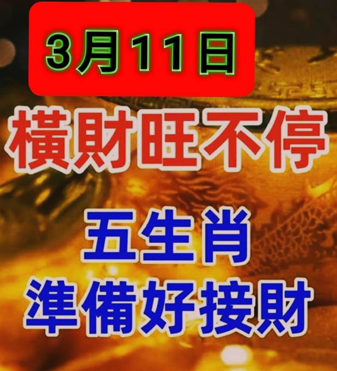 3月11日 橫財旺不停 「 5生肖 」 準備好接