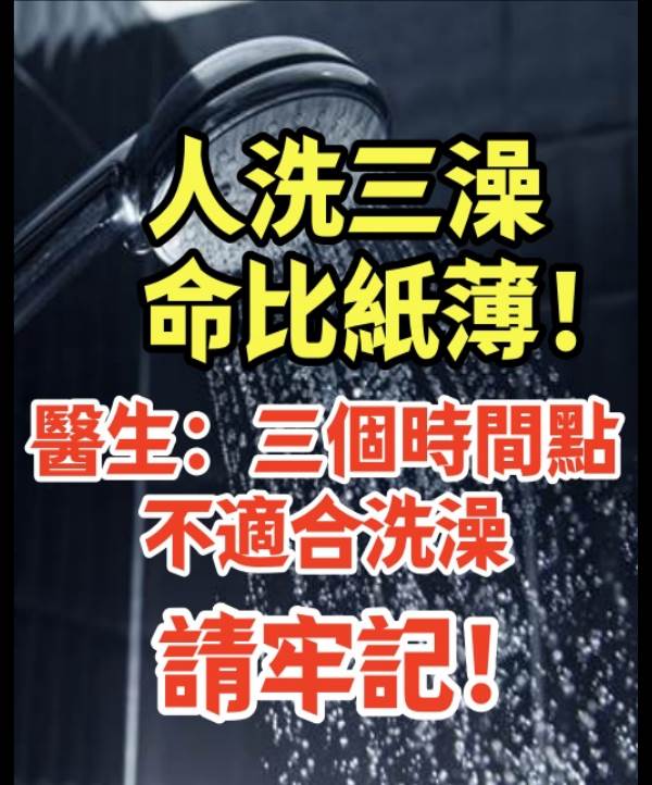 人洗三澡,命比紙薄!!! 醫生:三個時間點不適合洗澡,請牢記!