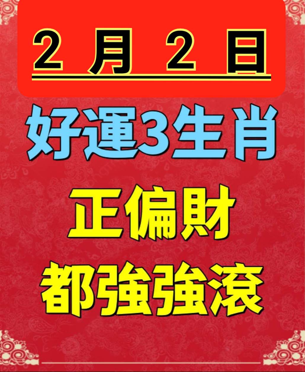 2月2日 好運3生肖 正偏財運都極佳旺盛