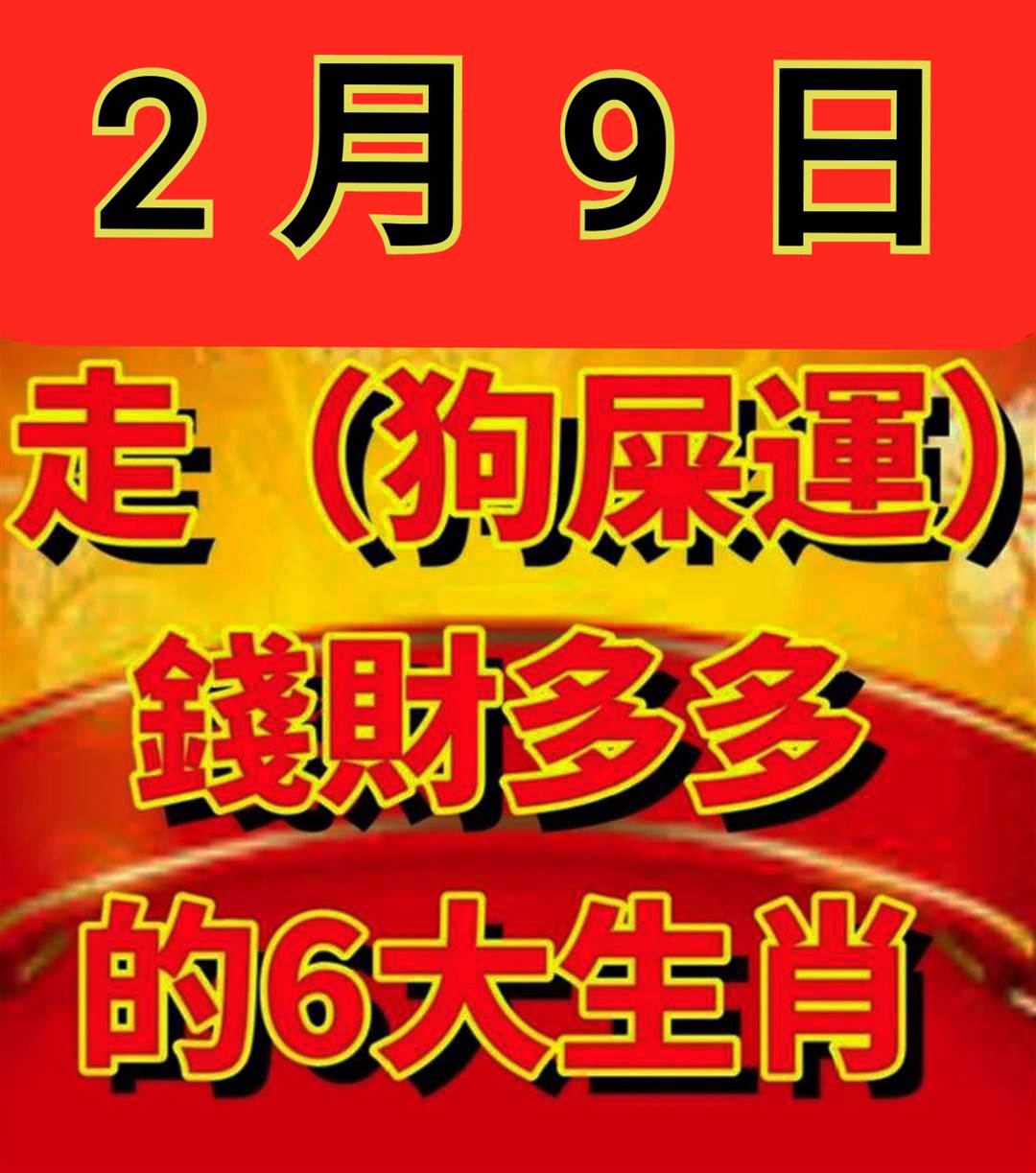 2月9日 (狗屎運) 財富多多的 6大生肖