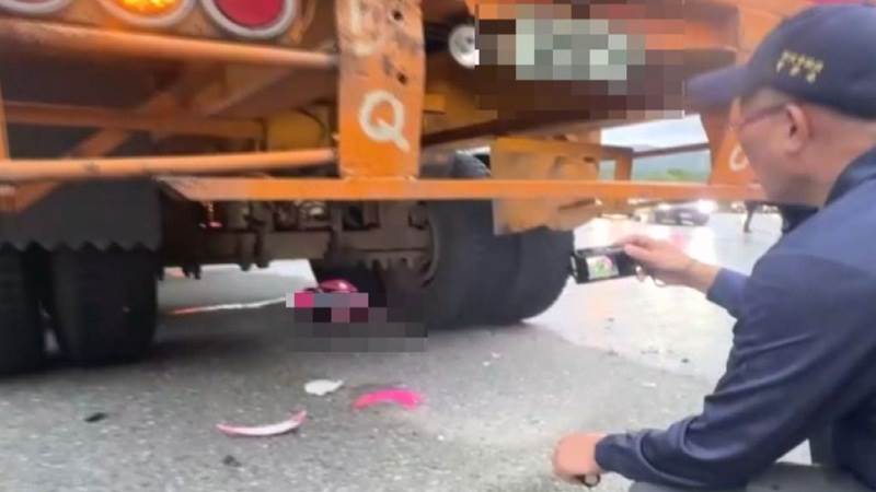 瑞芳驚傳死亡交通事故!機車騎士捲入貨櫃車底 遺留血跡安全帽碎裂
