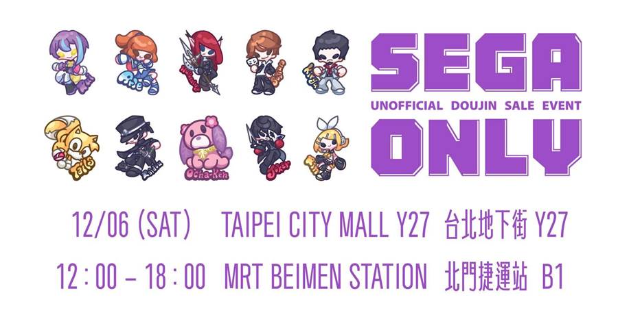 自遊工坊 ZIYU Studio 所舉辦的第二屆「SEGA ONLY」將于 2025 年 12 月 6 日于台北地下街的 Y27 廣場及北門捷運站 B1 等空間登場