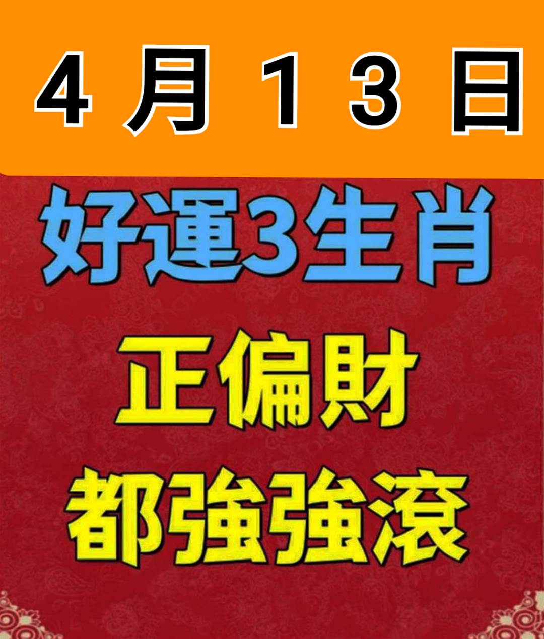4月13日 有好運的「 3生肖」 , 正偏財都「 強強滾 」