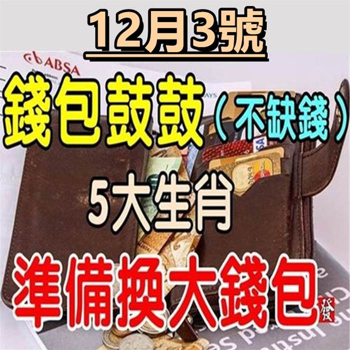 12月3日你不去找錢, 錢自動送上門的六大生肖