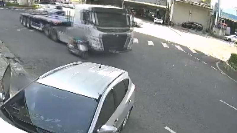 驚險!78歲女騎士為閃路邊違停車輛 遭大貨車擦撞險捲車底