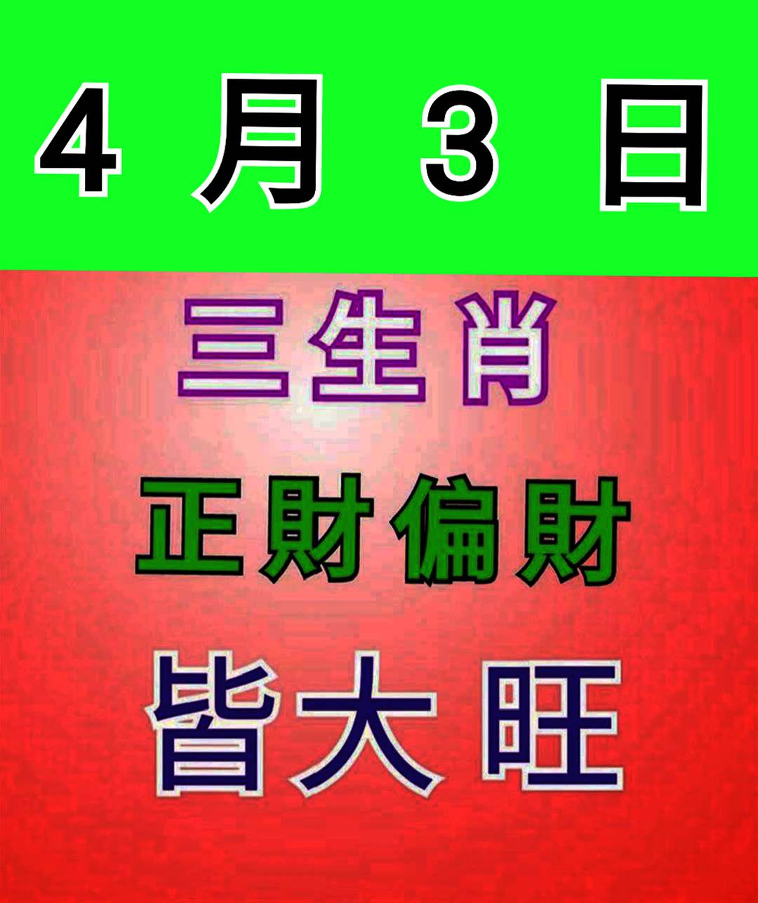 4月3日 三生肖 正財偏財「 皆大旺 」