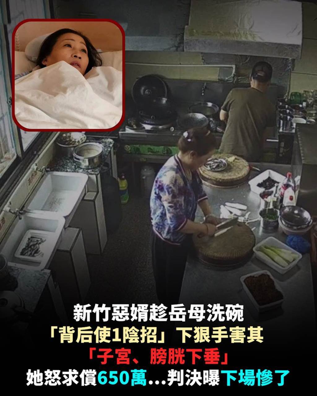 新竹惡腕趁岳母洗碗「背後讓1陰招」下狠手害其「子宮、陰道下垂」她怒求償650萬...胎兒曝下場慘了
