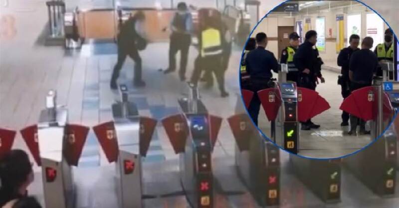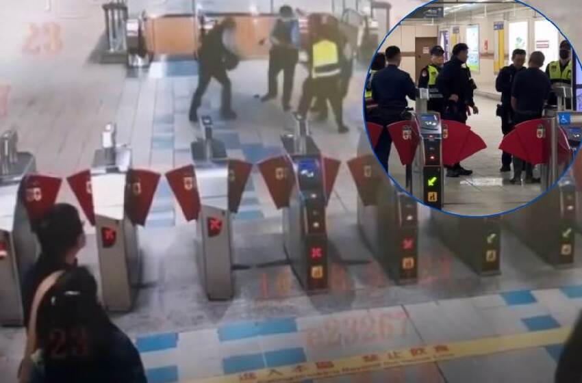 男子情緒激動,當場爆走,保全人員甚至拿出鋼叉,站長也施用辣椒水試圖制止。