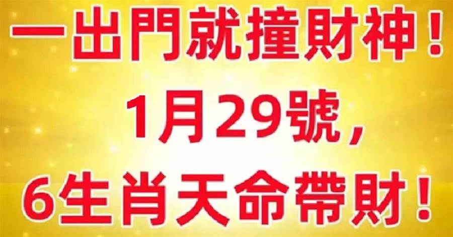 一出門就撞財神!1月29號,六生肖天命帶財!!