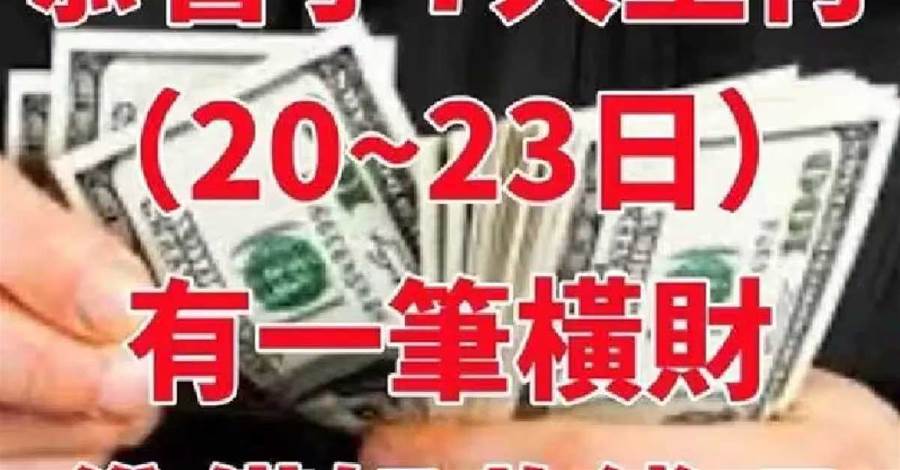 恭喜了7大生肖,在未來三天( 10月20~23日)即將有一筆橫財,準備好收錢吧!