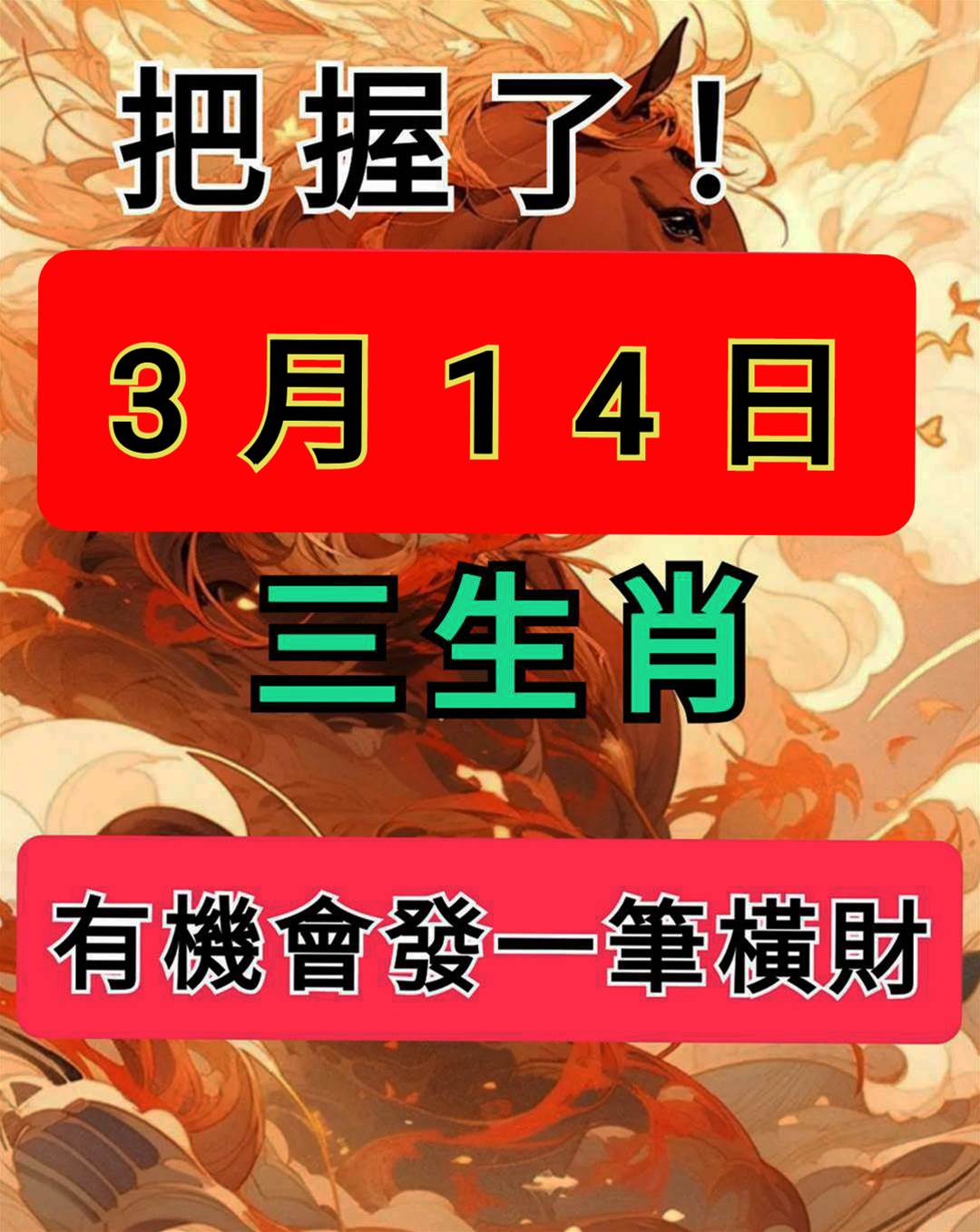 明天 3月14號 三生肖 橫財最旺
