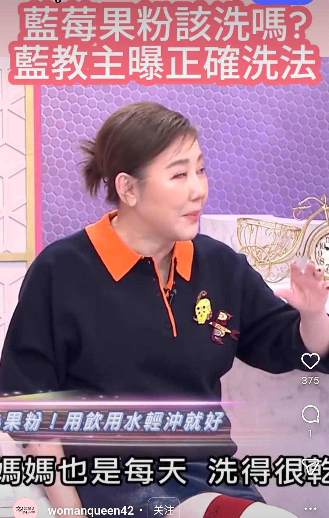 藍心湄就在《女人我最大》節目中分享到,藍莓只要用飲用水輕輕沖30~60秒就好,過度清洗反而可能破壞營養,甚至讓細菌更容易附著。