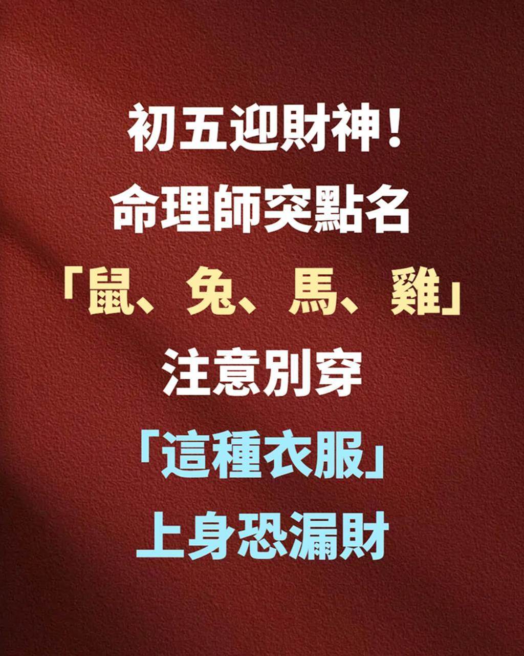 初五迎財神!命理師突點名「鼠、兔、馬、雞」注意別穿「這種衣服」上身恐漏財