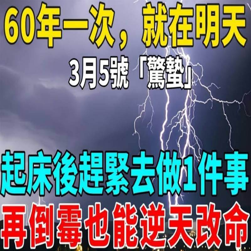 ⚡60年一次!就在明天!2026年3月5日「驚蟄」,起床後趕緊做這 1 件事,再倒霉也能逆天改命!🐉💰📢 2026年3月5日是農曆「驚蟄」,這是一年中最強的轉運日之一! 「驚蟄」代表萬物甦醒、陽氣回升、財運復甦,這一天如果做對關鍵動作,不僅能轉運開財,還能擺脫厄運,迎來一整年的好運!🔥 60年才一次的超強能量日,千萬別錯過!只要起床後趕緊做這 1 件事,就能讓財運翻身、好運連連!