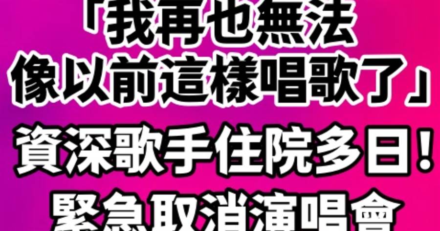 「我再也無法像以前這樣唱歌了」資深歌手住院多日!緊急取消演唱會 最新病情現況曝!