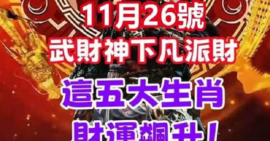 11月26號,武財神下凡派財,這五大生肖財運飆升!快來接財