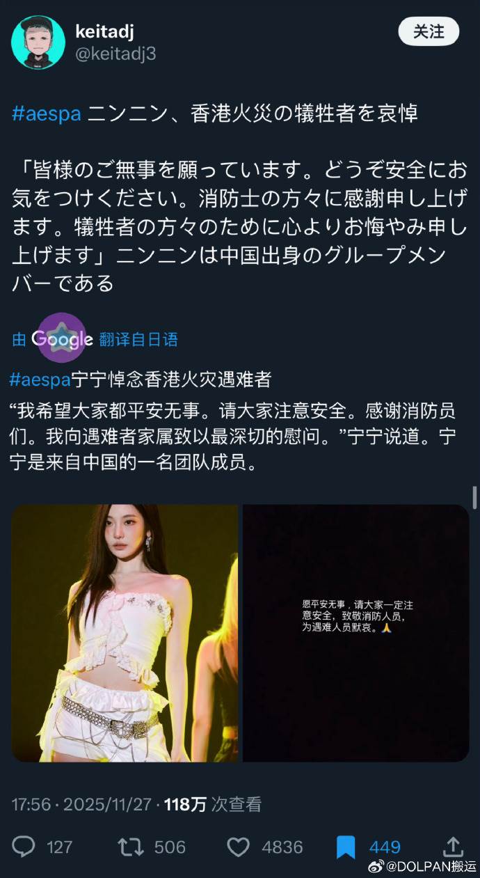 aespa寧寧為香港火災一舉動被日本人炎上!韓網都看不下去「日本人是不是瘋了?」!