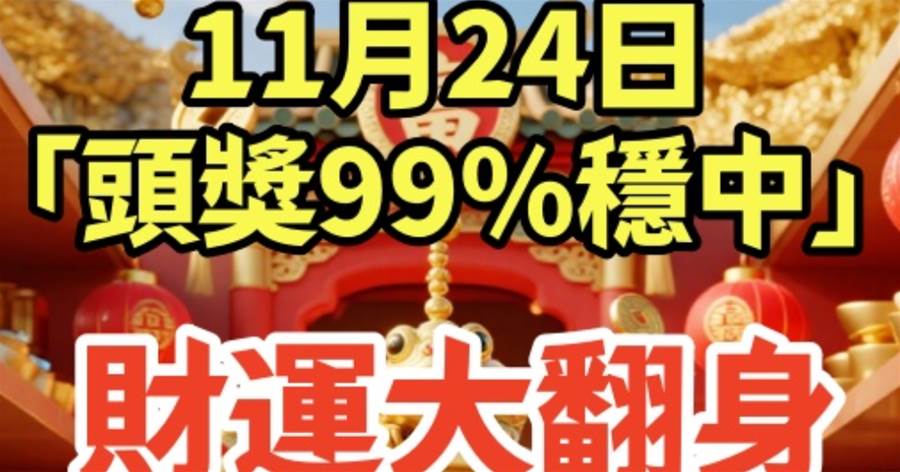 11月24日「頭獎99%穩中」財運大翻身,發家致富的六大生肖