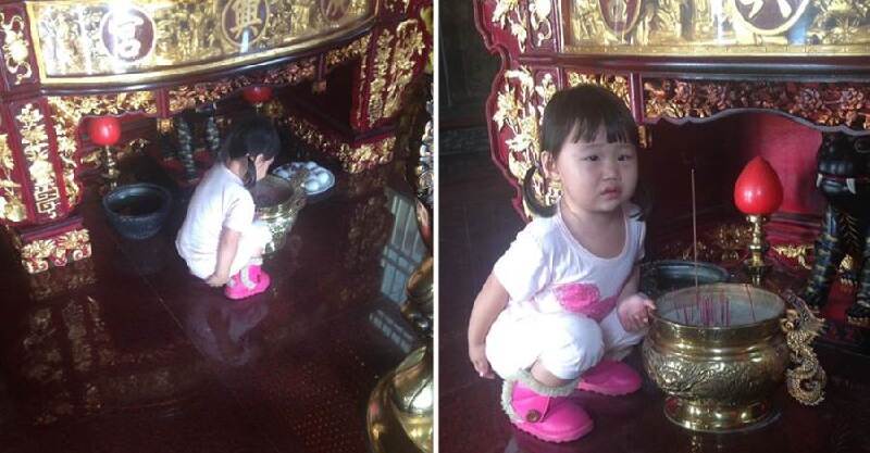 拜虎爺突然蹲下!3歲女兒「用手扶著金爐」五官全皺成團 媽媽看清後「秒腿軟下跪」:不知者無罪