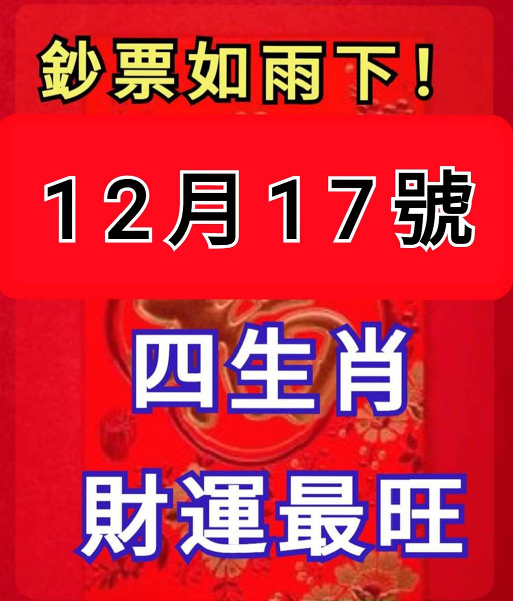 明天 「 12月17號 」 三生肖 橫財最旺!