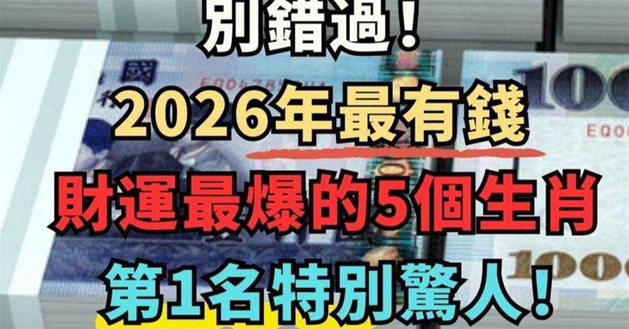別錯過!2026年最有錢,財運最爆的5個生肖,第1名特別驚人!