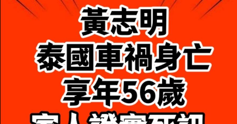 黃志明泰國交通事故身亡享年56歲 家人證實死訊「遺體運回大馬」