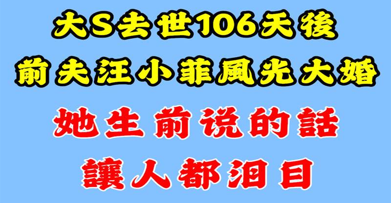 大S去世106天后,前夫汪小菲風光大婚「她生前說的話」讓人淚目