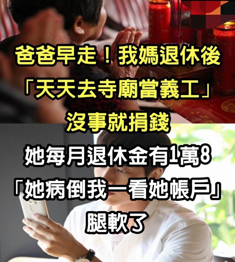 父親早走! 母親退休後「 天天去寺廟當義工 」 沒事就捐款 「 她病倒我一看她賬戶 」 腿軟了