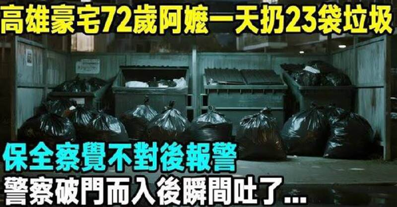高雄豪宅72歲阿嬤一天扔23袋垃圾,保全察覺不對後報警,警察破門而入後瞬間吐了...