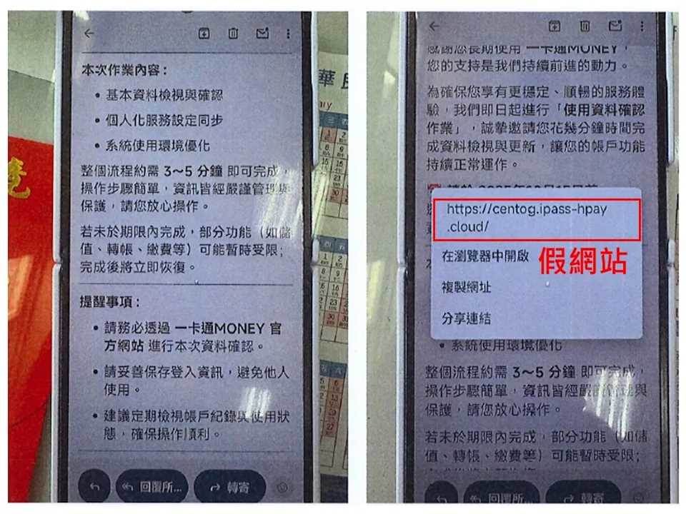 自10月10日起,詐團大量冒用「一卡通 iPASS MONEY」名義發送Email與簡訊,謊稱要「更新會員資料」或「消費回饋」,誘導民眾點入仿冒網站。許多人輸入姓名、身分證號、密碼與電話後,賬戶即遭小額盜刷。刑事局統計,短短10天內共173件報案、損失金額高達872萬元,其中最高個案被跨境交易21筆,遭盜刷18萬3572元。
