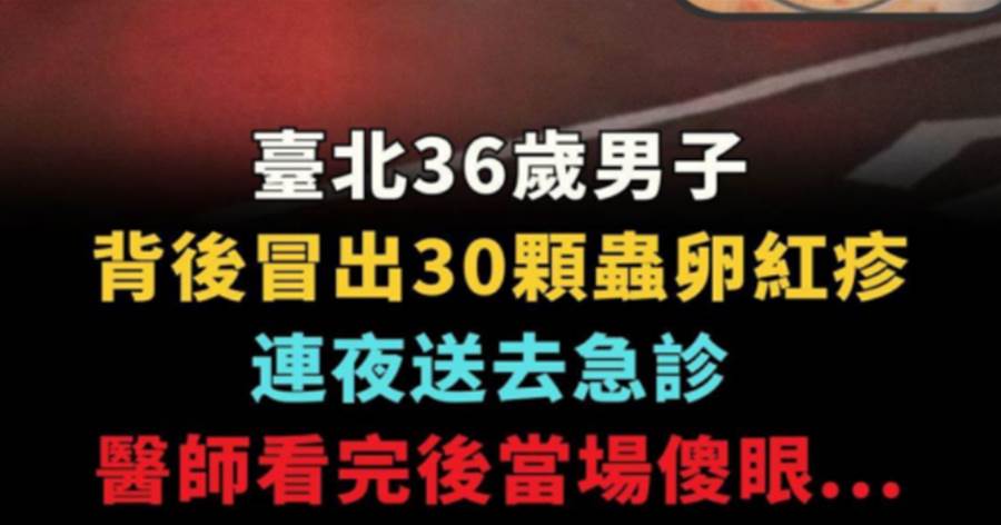 臺北36歲男子背後冒出30顆蟲卵紅疹, 連夜送去急診, 醫師看完後當場傻眼...