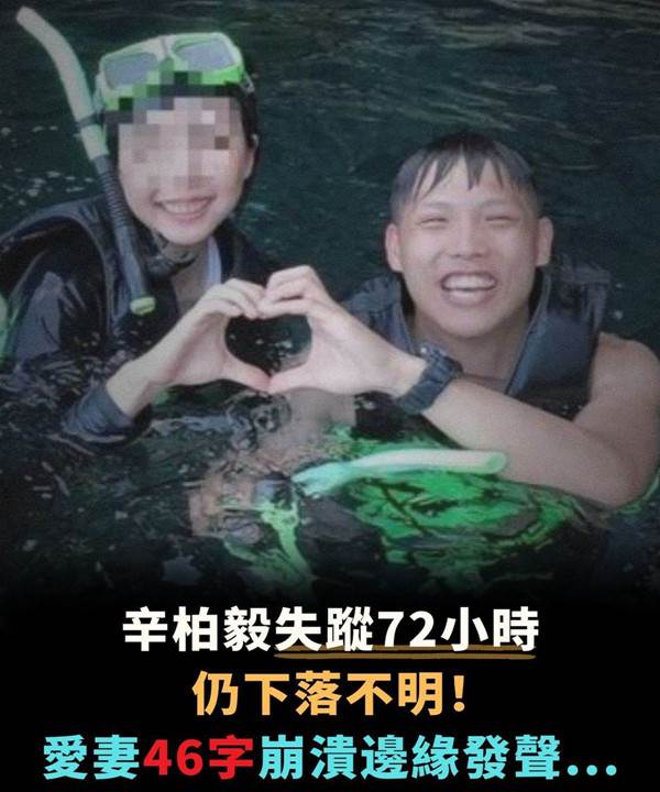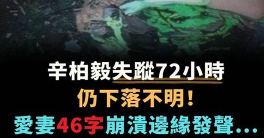 辛柏毅失蹤72小時仍下落不明!愛妻46字崩潰邊緣發聲...