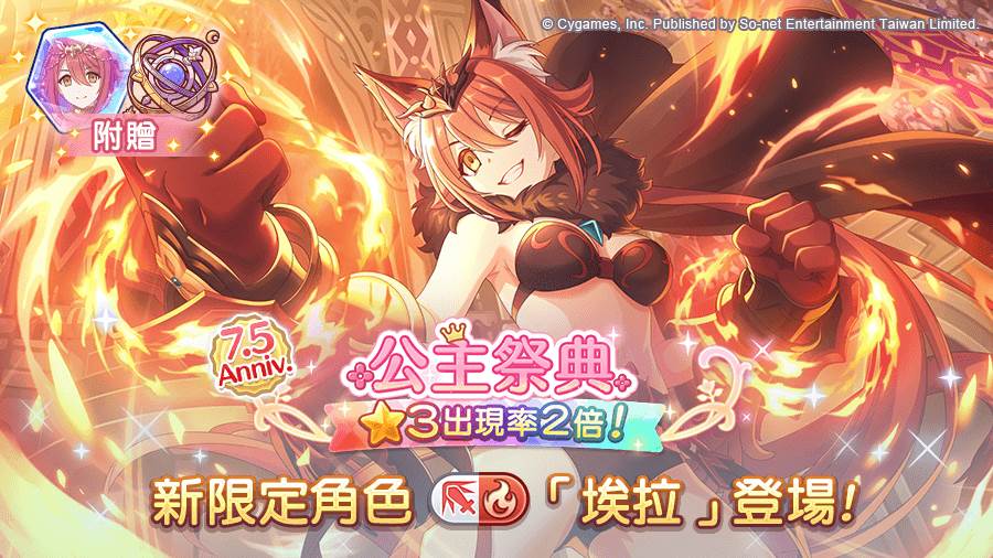 官方指出,2026/01/01 116:00 起,將舉辦「公主祭典轉蛋」。公主祭典轉蛋舉辦期間中,★3 角色的提供機率將為平常的 2 倍。公主祭典轉蛋舉辦期間中,將有「公主祭典限定角色」登場。此外,公主祭典限定新角色「埃拉」登場,公主祭典轉蛋在下列期間中「埃拉」的提供機率將會上升