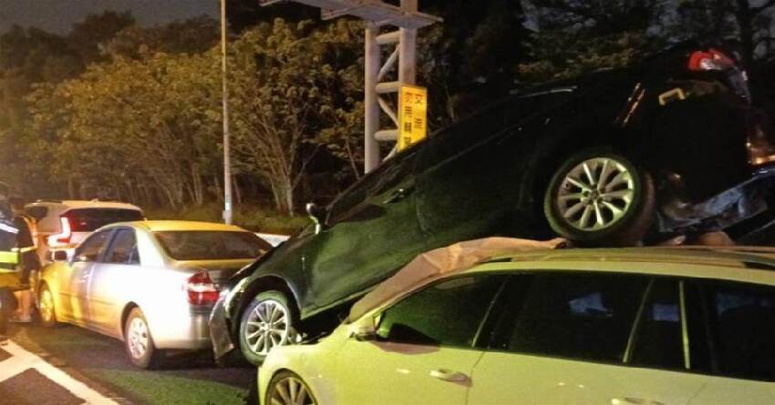 國道1號五楊高架于今(17日)晚間8時38分,國道1號高架南向70.4公里內側車道,發生5輛自小客車連環追撞事件。