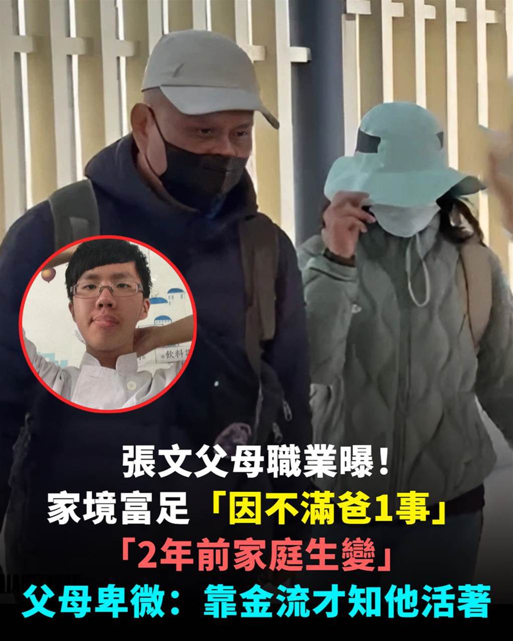 張文父母職業曝!家境富足「因不滿爸1事」「2年前家庭生變」父母卑微:靠金流才知他活著