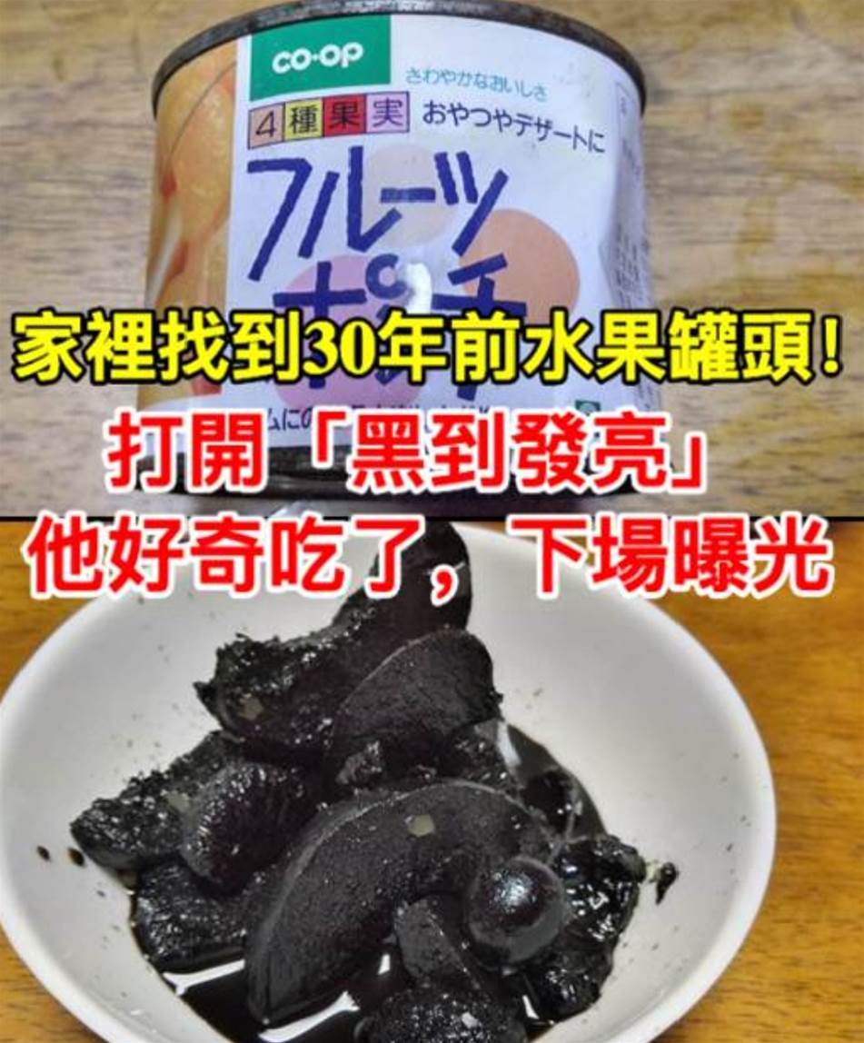 在家裡找到30年前的水果罐頭, 打開 「黑到發亮」他好奇吃了,結果…