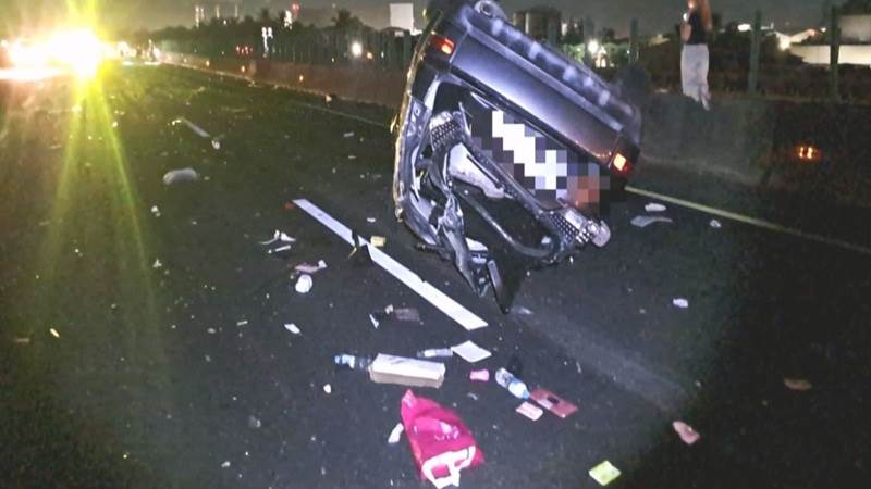 國道四車連撞!轎車「翻十幾圈」 女駕駛意識模糊搶救中