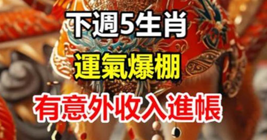下週5生肖運氣爆棚!迎職涯新高度,意外收入進賬
