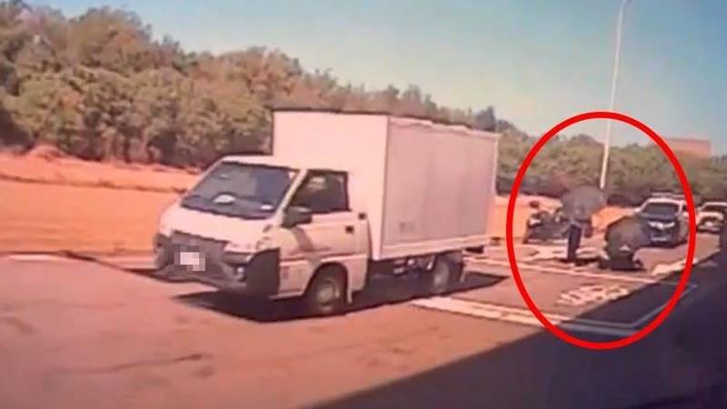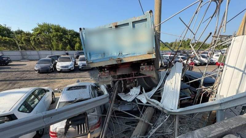 大貨車國道匝道失控撞停車場!「壓爆多車」 駕駛頭部撕裂傷送醫