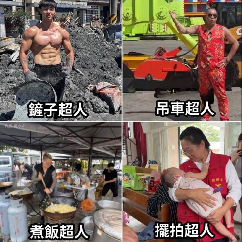 花蓮超人圖鑑:三個真硬漢,一個擺拍俠!網笑:這年頭會站C位比會吊車重要