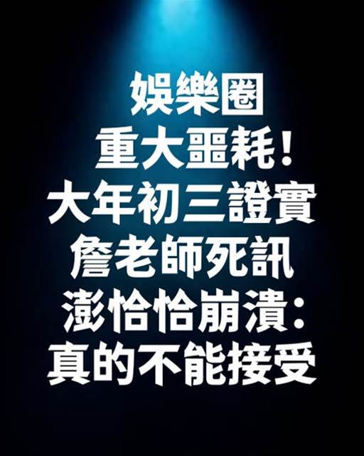 娛樂圈重大噩耗!大年初三證實詹老師死訊,澎恰恰崩潰:真的不能接受...