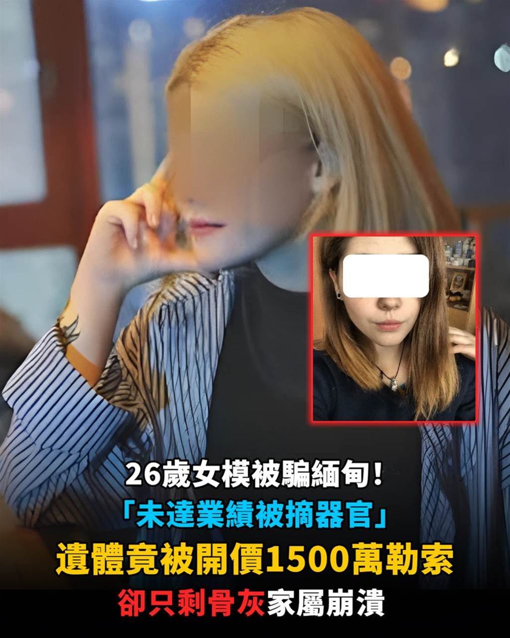 26歲女模被騙緬甸!「未達業績被摘器官」遺體竟被開價1500萬勒索,卻只剩骨灰家屬崩潰