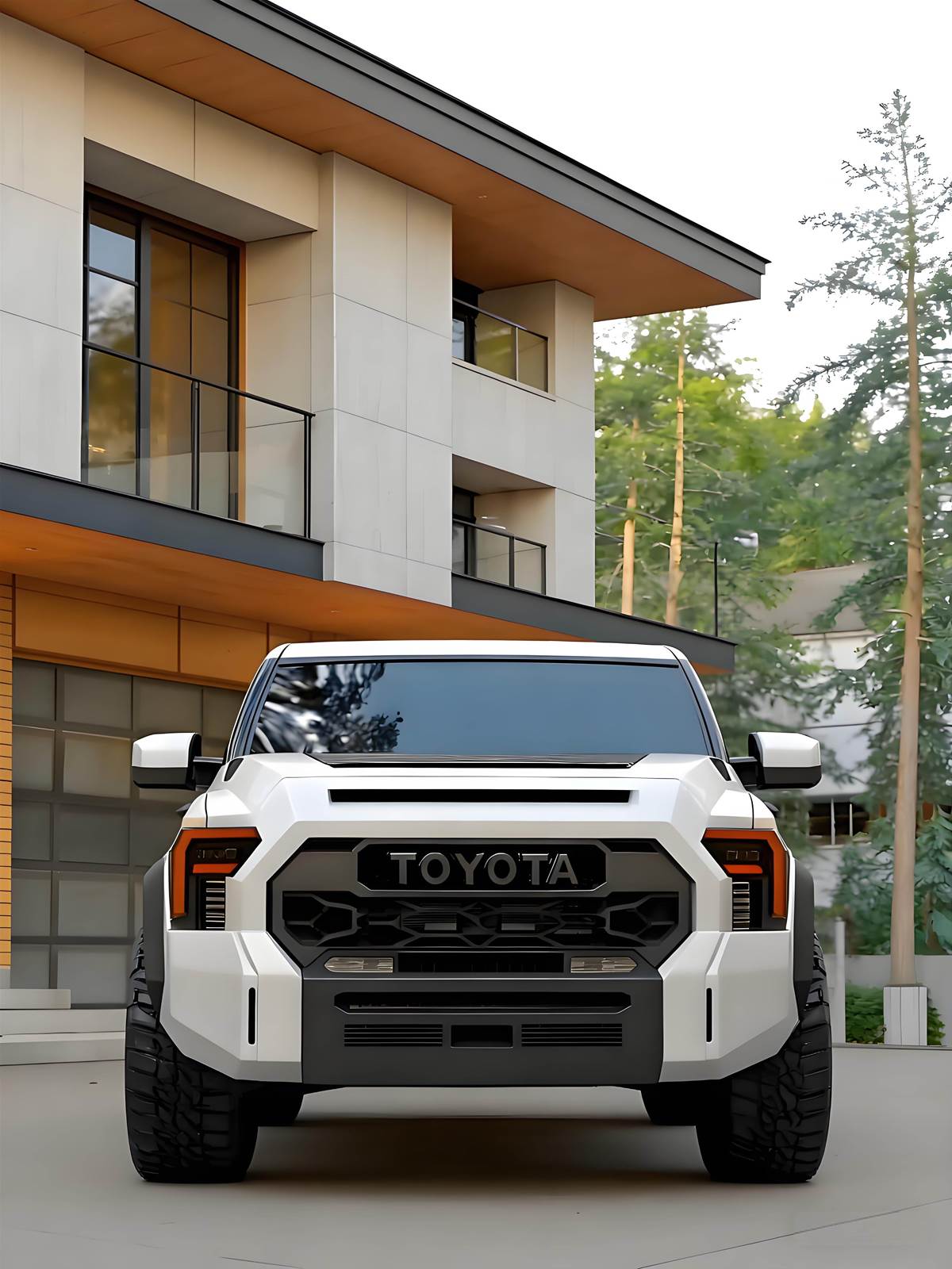 這款概念皮卡最吸睛的莫過于全車「幾何切割」設計語彙。車頭搭載大尺寸梯形水箱護罩,搭配貫穿式 TOYOTA 立體字樣,視覺張力十足;銳利的 LED 頭燈組採用垂直佈局,晝行燈宛如獠牙般延伸,辨識度在夜間絕對滿分。