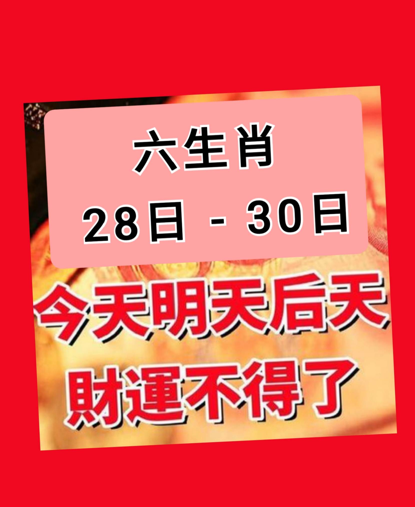 12月28日 - 30日 ( 今天明天后天 ) 六生肖 財運不得了