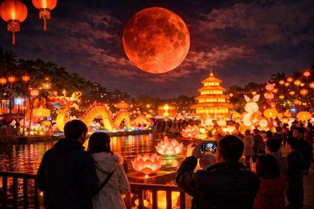 「血月」月全食將于3月3日登場,恰逢元宵佳節,形成「紅月伴花燈」奇景。