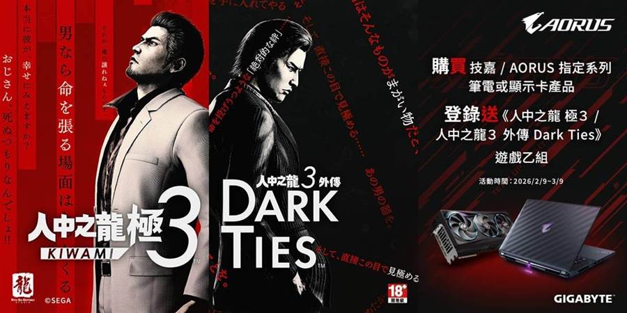 18,技嘉推出新春限定活動 與《人中之龍 極 3 / 人中之龍 3 外傳 Dark Ties》合作