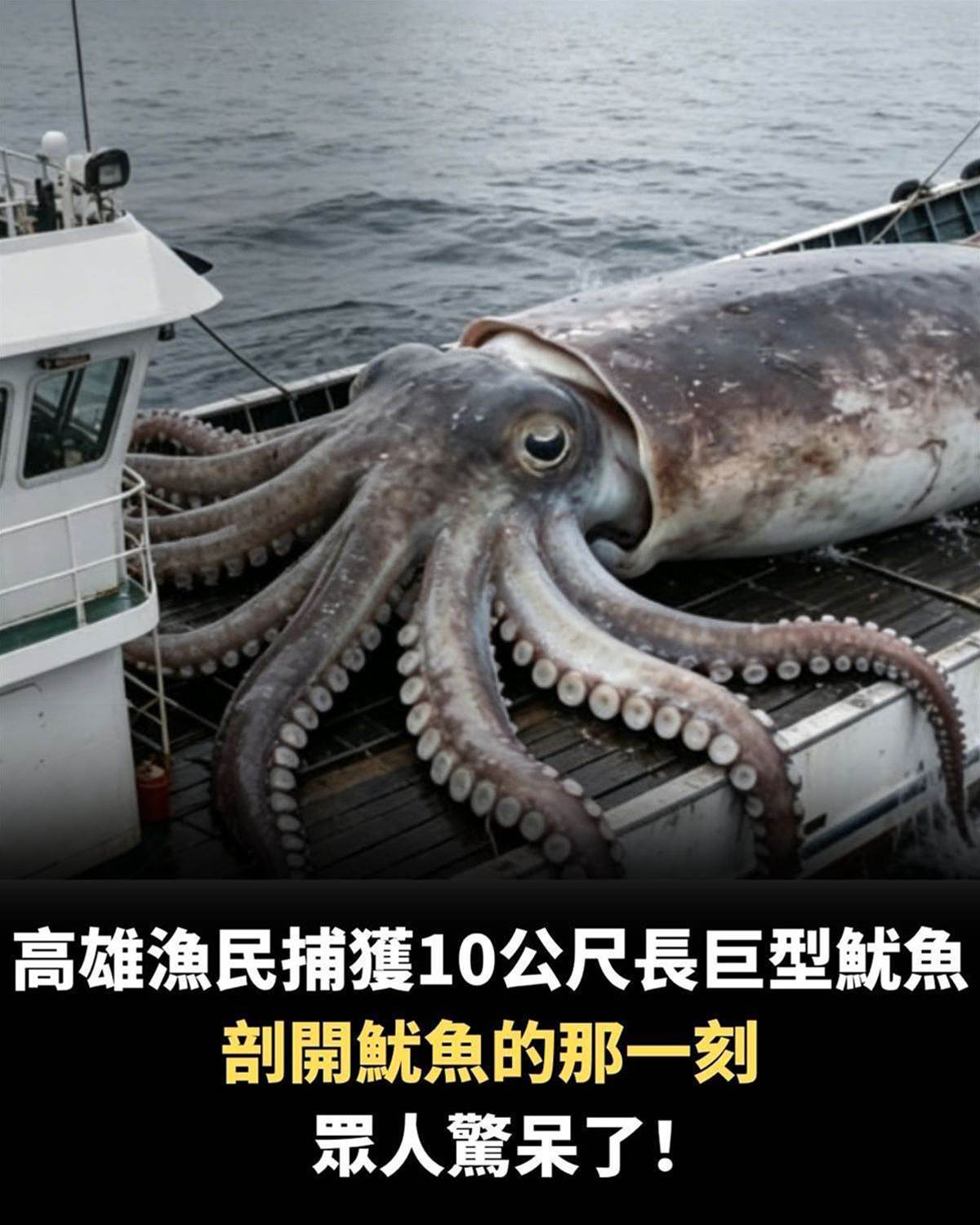 高雄漁民捕獲10公尺長巨型魷魚,剖開魷魚的那一刻,眾人驚呆了!
