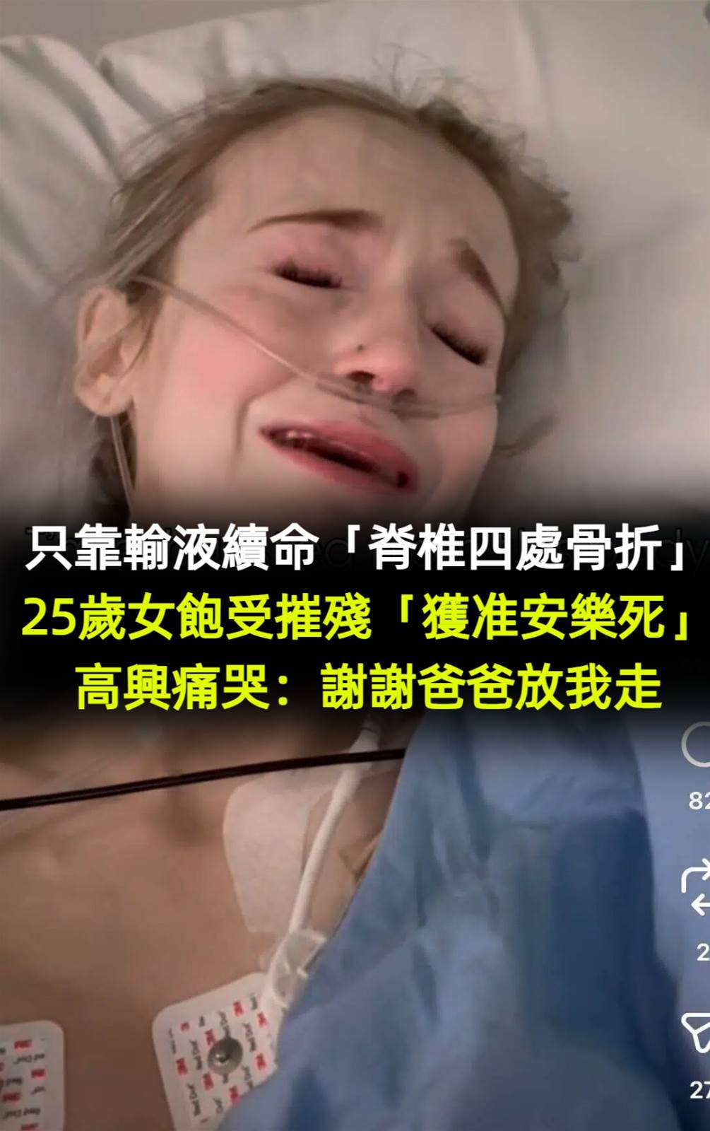 只靠輸液續命「脊椎四處骨折」!25歲女飽受摧殘「獲準安樂死」高興痛哭:謝謝爸爸放我走