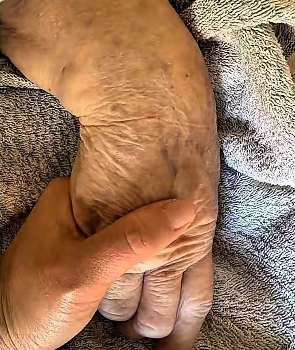 這雙手曾在《後來》的MV中出現過——翻動信紙,輕輕撥動吉他弦,那時的指尖,帶著青春的柔和與靈動。而如今,這雙手依然修長,但關節微微凸起,青筋悄然可見,還有幾顆小小的老年斑點點,似乎在不言中透露歲月的足跡。她的指甲修剪得整潔,裸色的甲油也顯得從容淡雅,盡管如此精致的保養,也無法完全掩蓋歲月在她身上留下的痕跡。